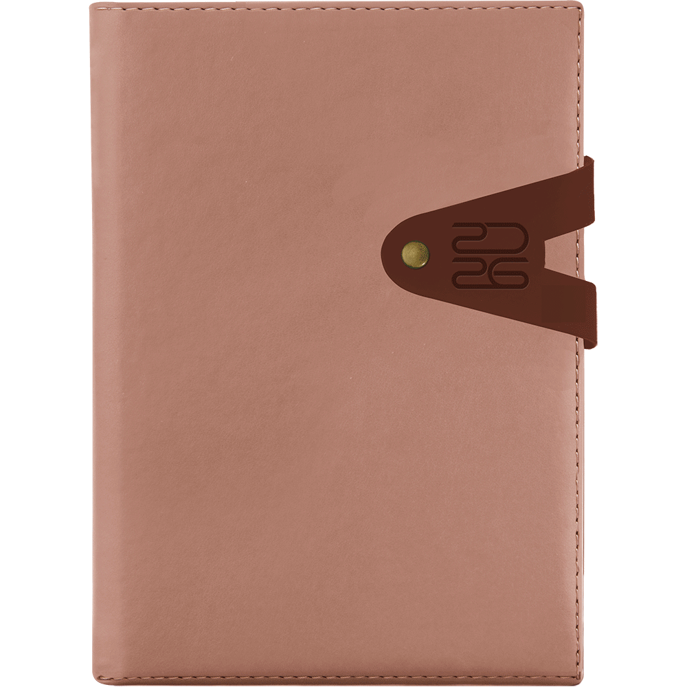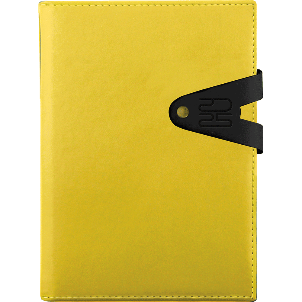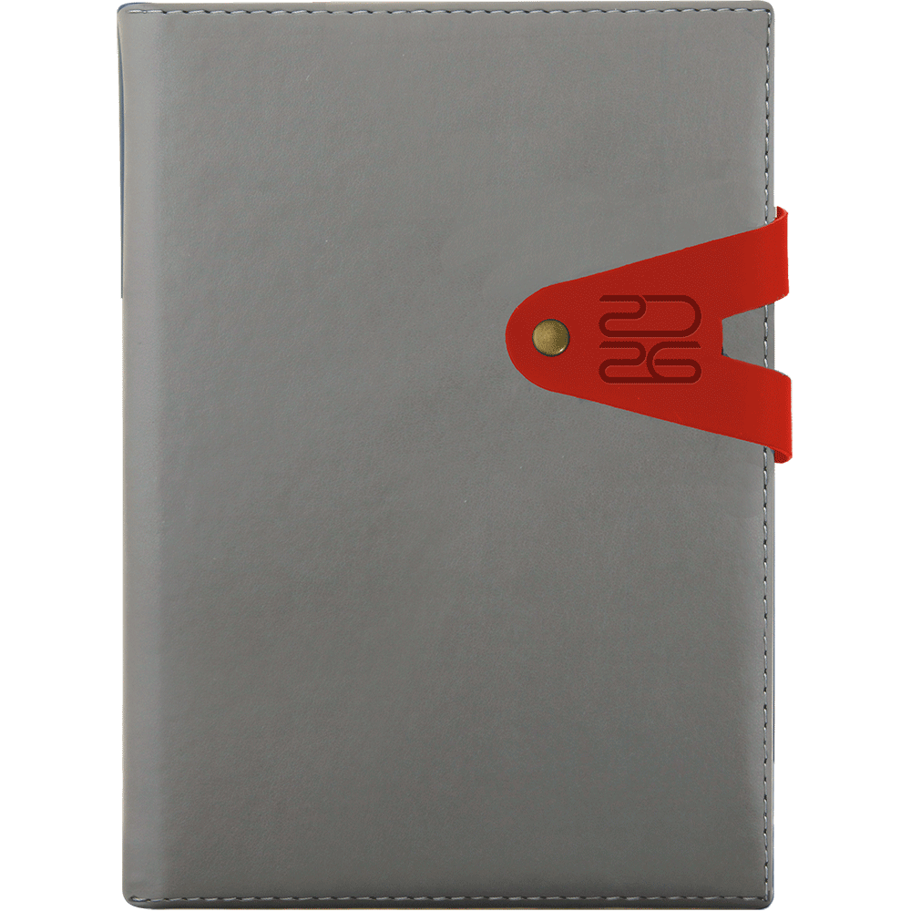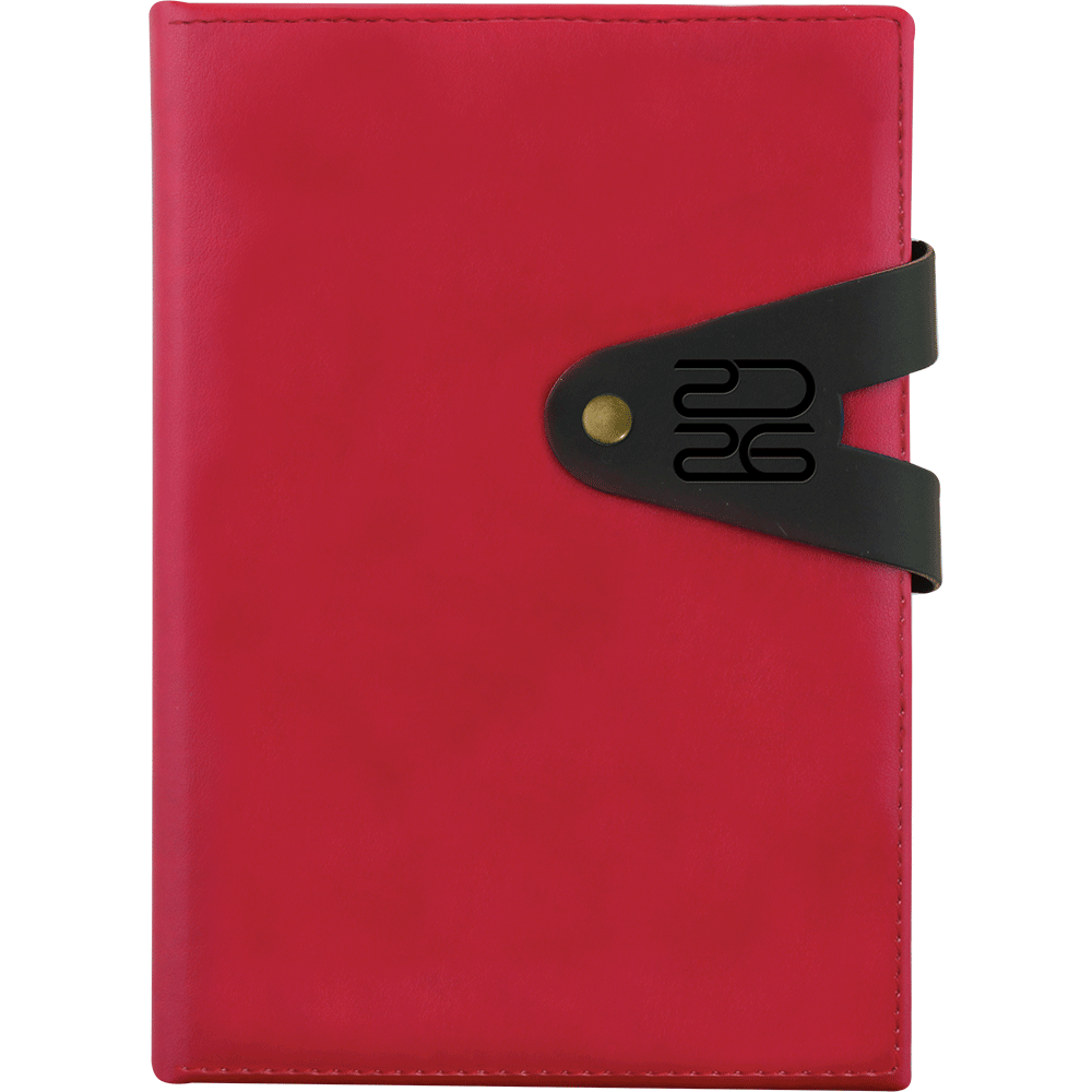 Agenda cu coperta buretata, sistem de inchidere cu clapa si capsa.