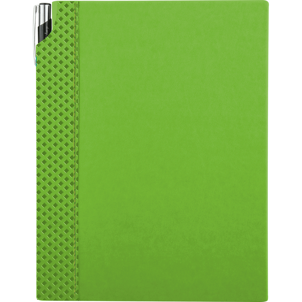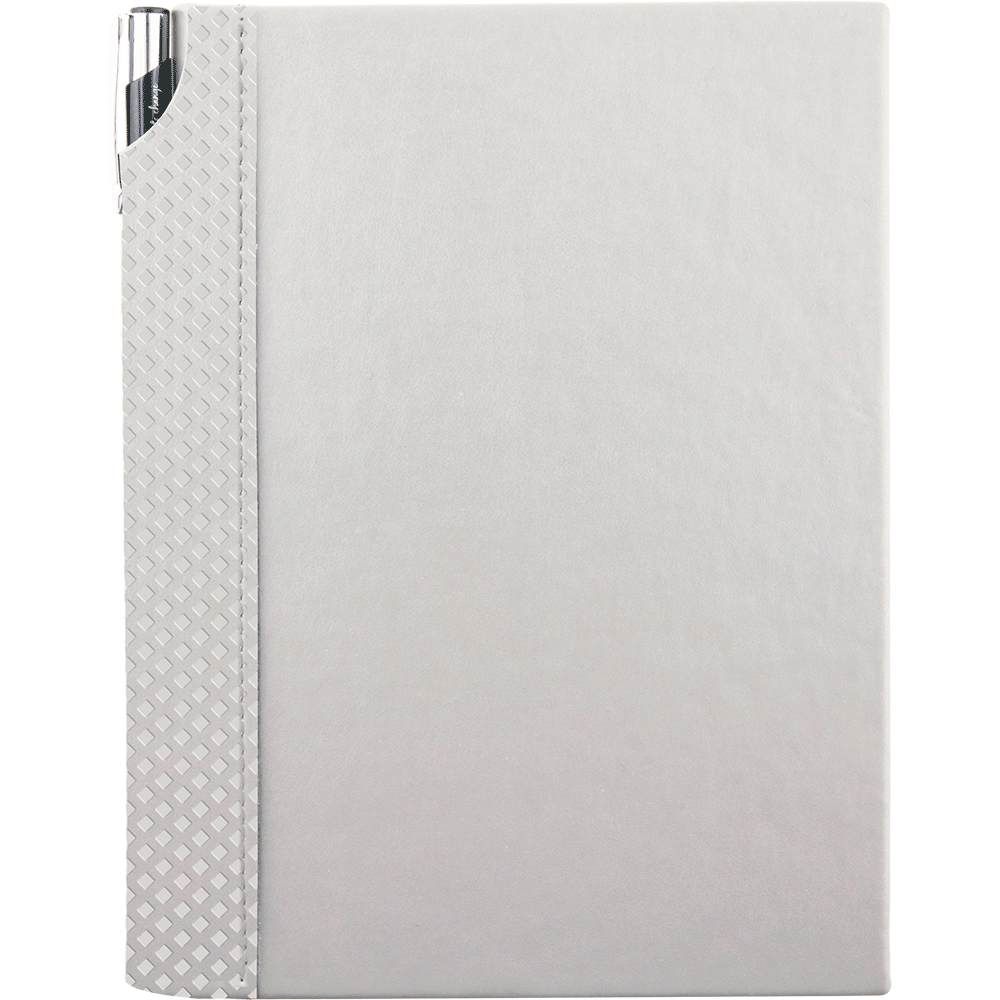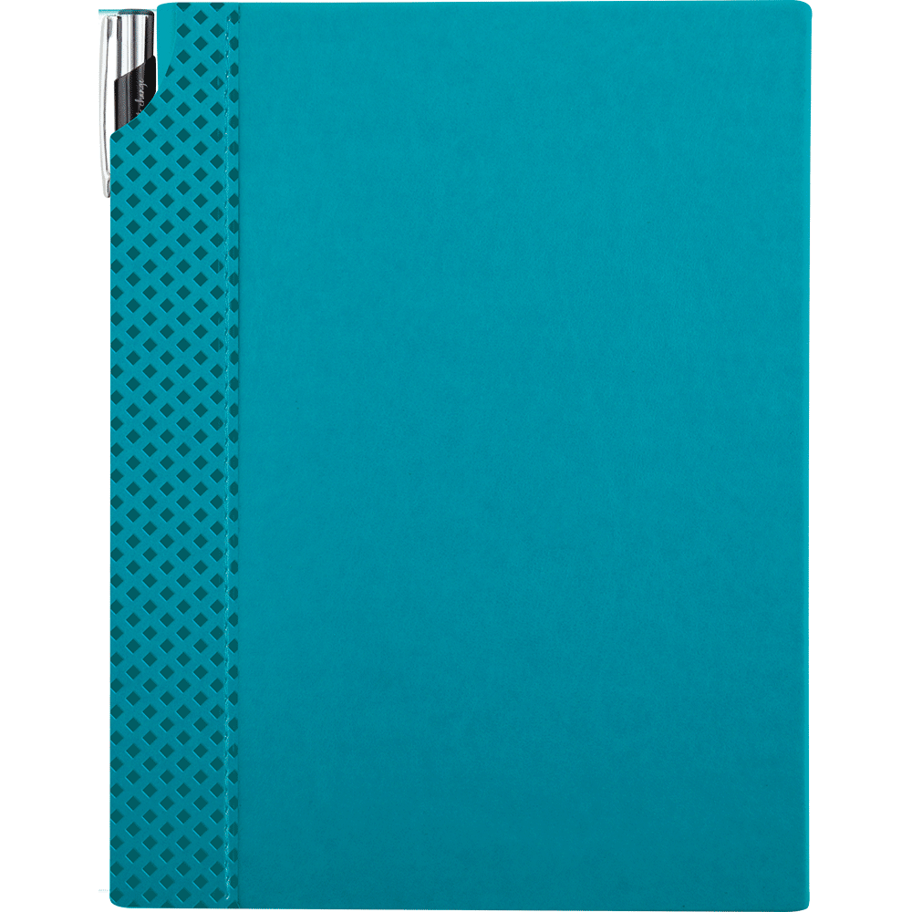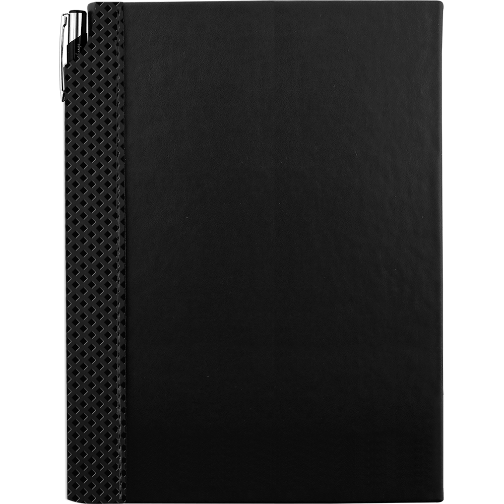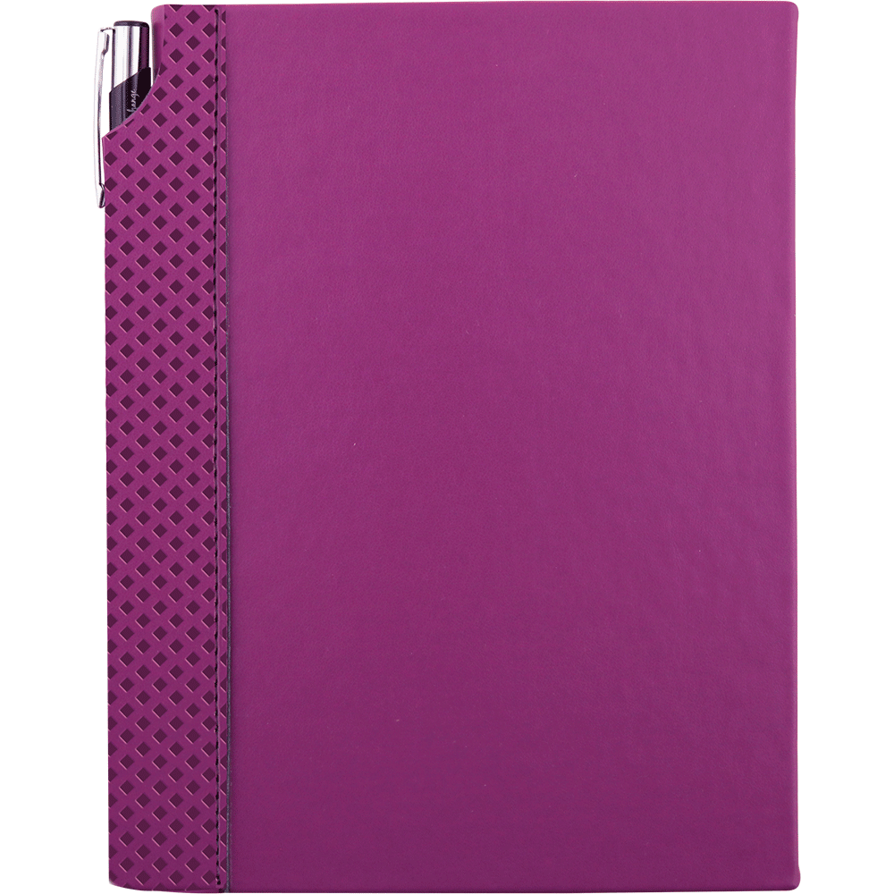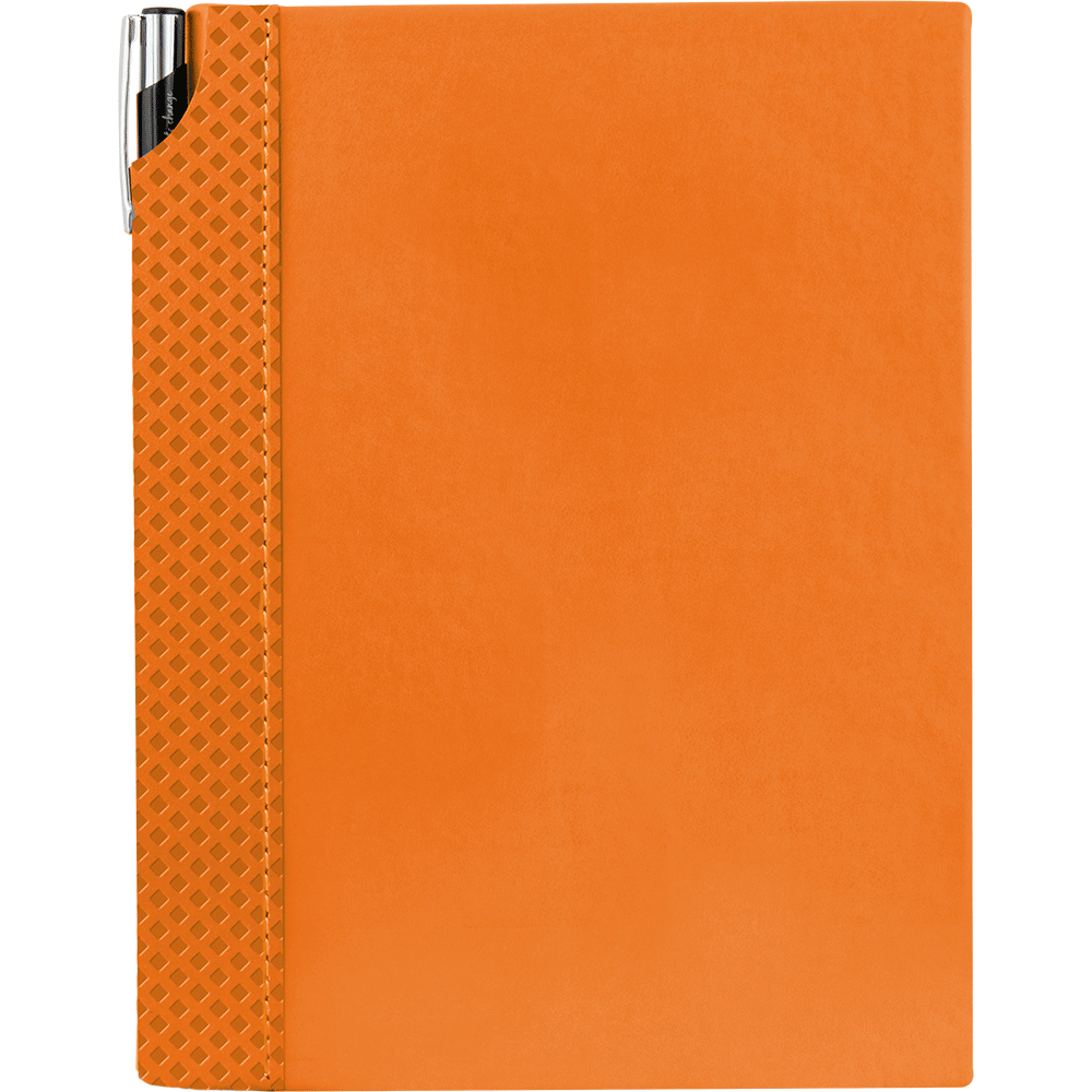Agenda cu cotor dublu, embosat care tine loc de suport de pix.