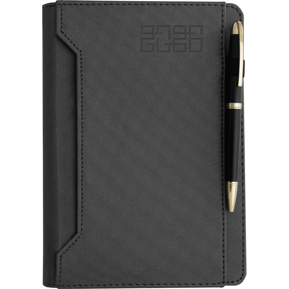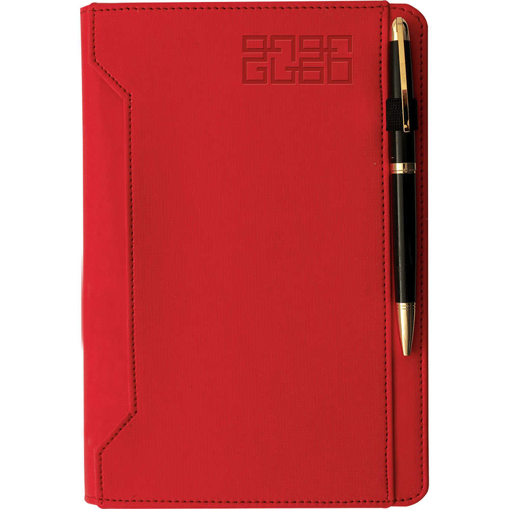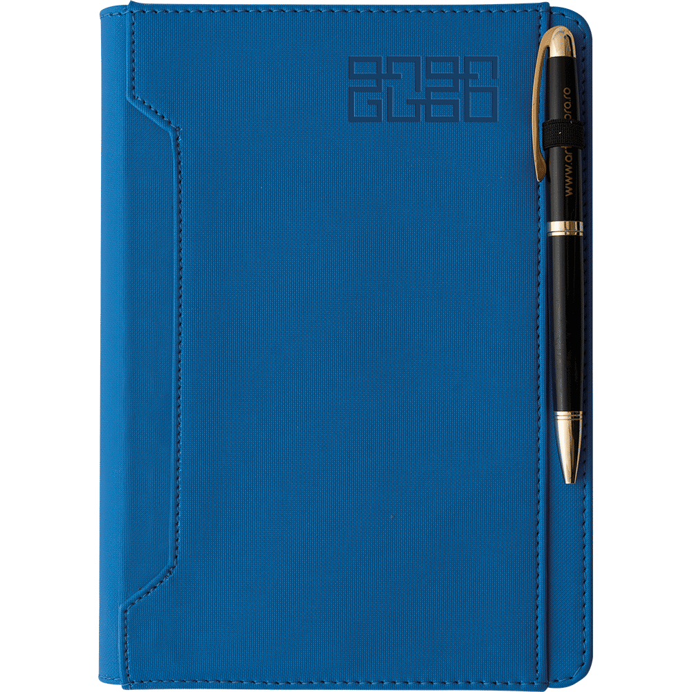 Agenda rigida din poliuretan superior texturat buzunar de documente de coperta si suport pentru pix.