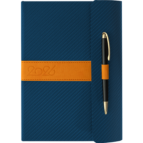 Agenda cu coperta rigida bimaterial si clapa flexibila.